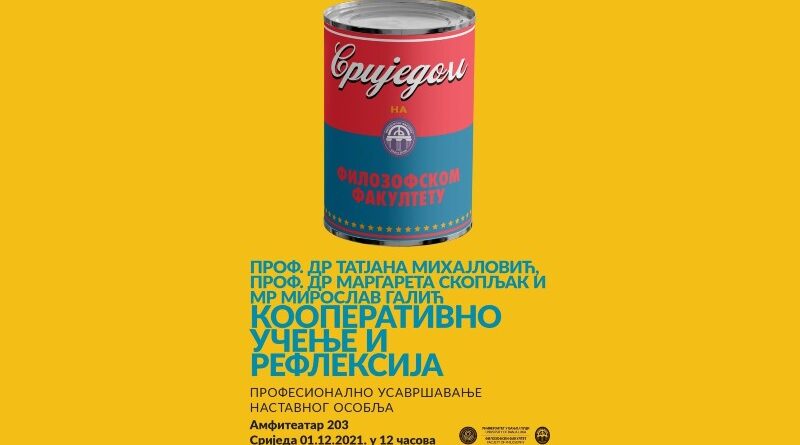 Predavanje na temu “Kooperativno učenje i refleksija” u organizaciji Filozofskog fakulteta i Centra za cjeloživotno učenje